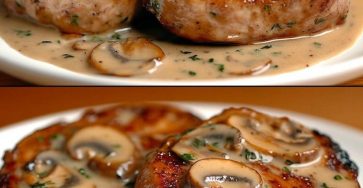 Filetes de Cerdo en Salsa Cremosa con Champiñones Ensalada Fresca